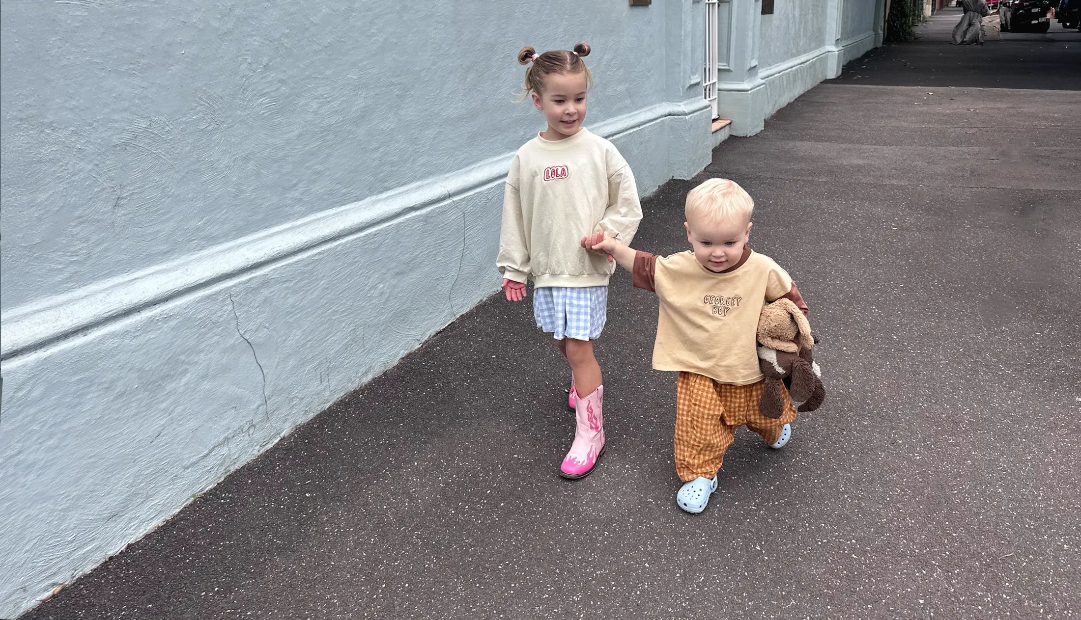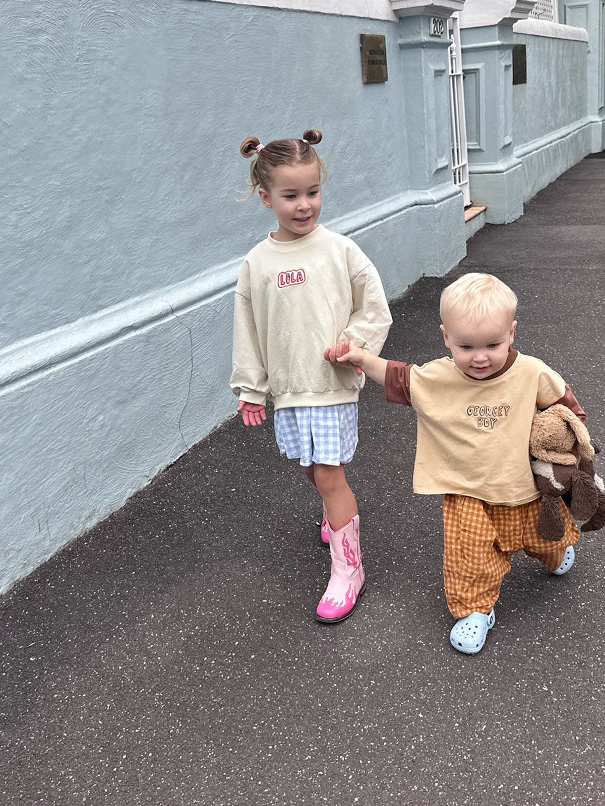 Think embroidered knits, custom tees that spell out their name, and cowboy boots with serious main-character energy. Everything we make is designed to be loved, worn, and kept forever.